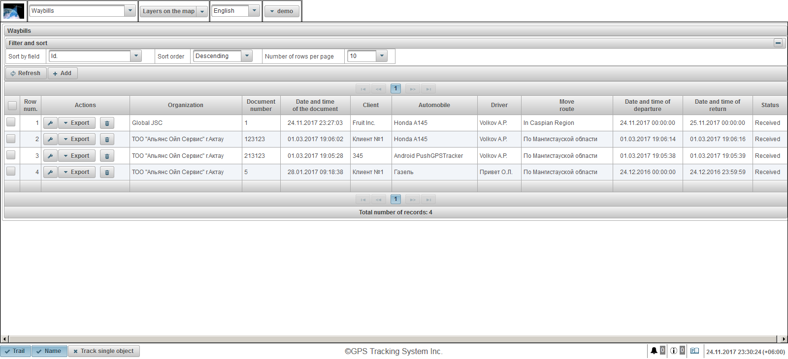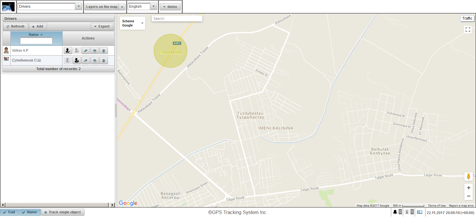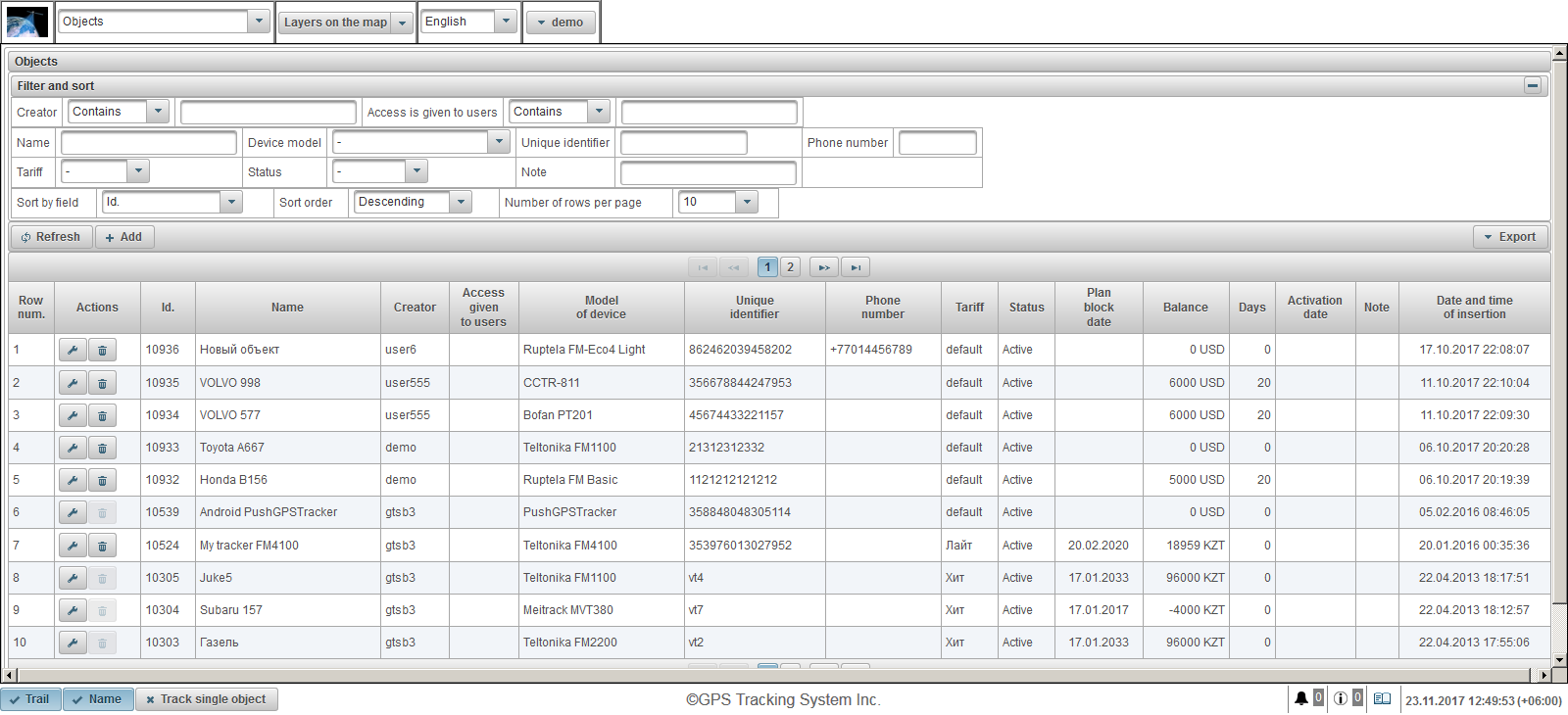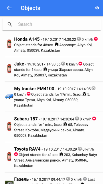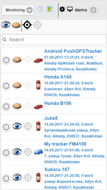 객체를 모니터링하기 위해 자동차 또는 개인 GPS / GLONASS 추적기 (컨트롤러)가 사용되며 모바일 앱이나 기타 장치가 사용됩니다.