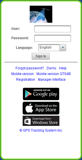 관리자 인터페이스로 이동하려면 "관리자 인터페이스"링크를 클릭하십시오. 다음은 Android, iOS 및 Windows 스토어 운영 체제 용 모바일 앱에 대한 링크입니다.