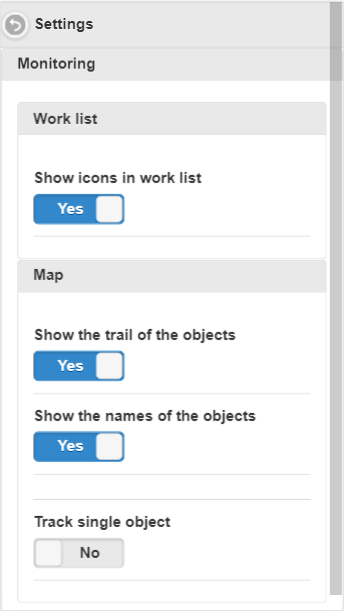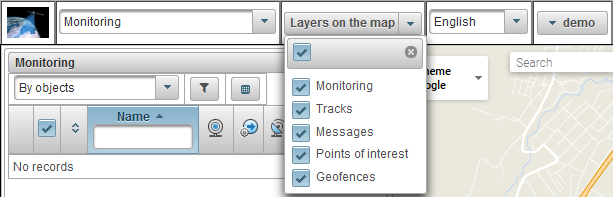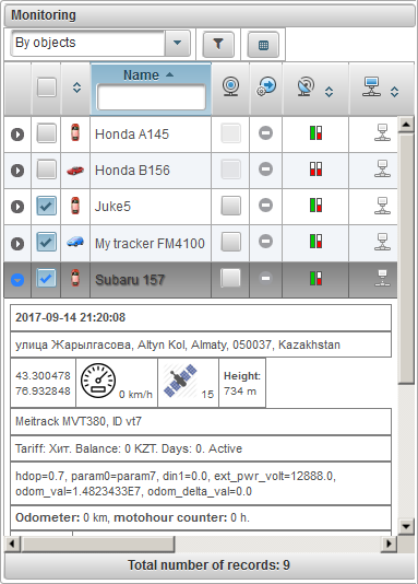 "모니터링"패널에도 나타납니다. 지도의 중앙에 개체를 표시하려면 목록에서 개체 이름을 클릭하십시오.