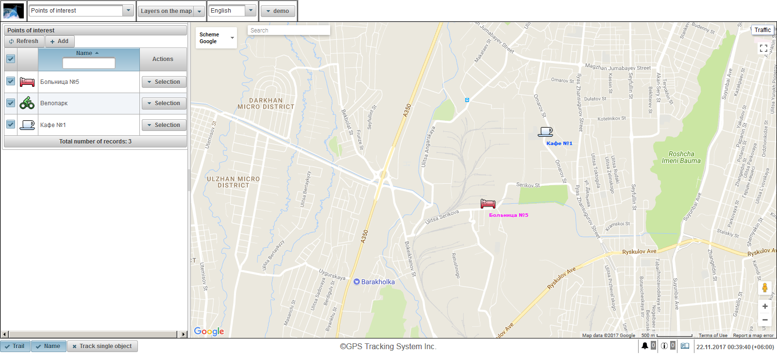 시스템 " Car GPS Kazakhstan +77782589661 "의 주요 기능 :