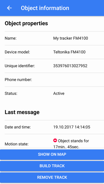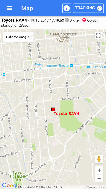 개체별로 추적 모드로 이동하려면 주 메뉴 항목 "개체"로 이동하여 특정 개체를 클릭해야합니다. 그러면지도가 선택한 개체의 가운데에 맨 위에 표시됩니다 표시됩니다 :